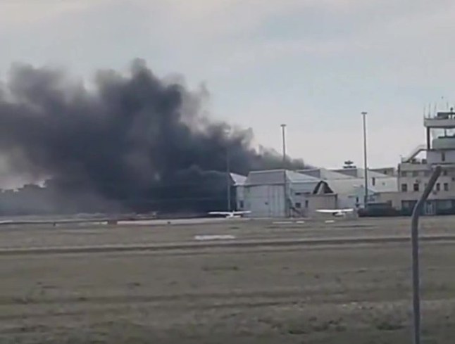 Plumes of thick smoke were seen from miles away after the incident at the airfield,which is nestled among houses.