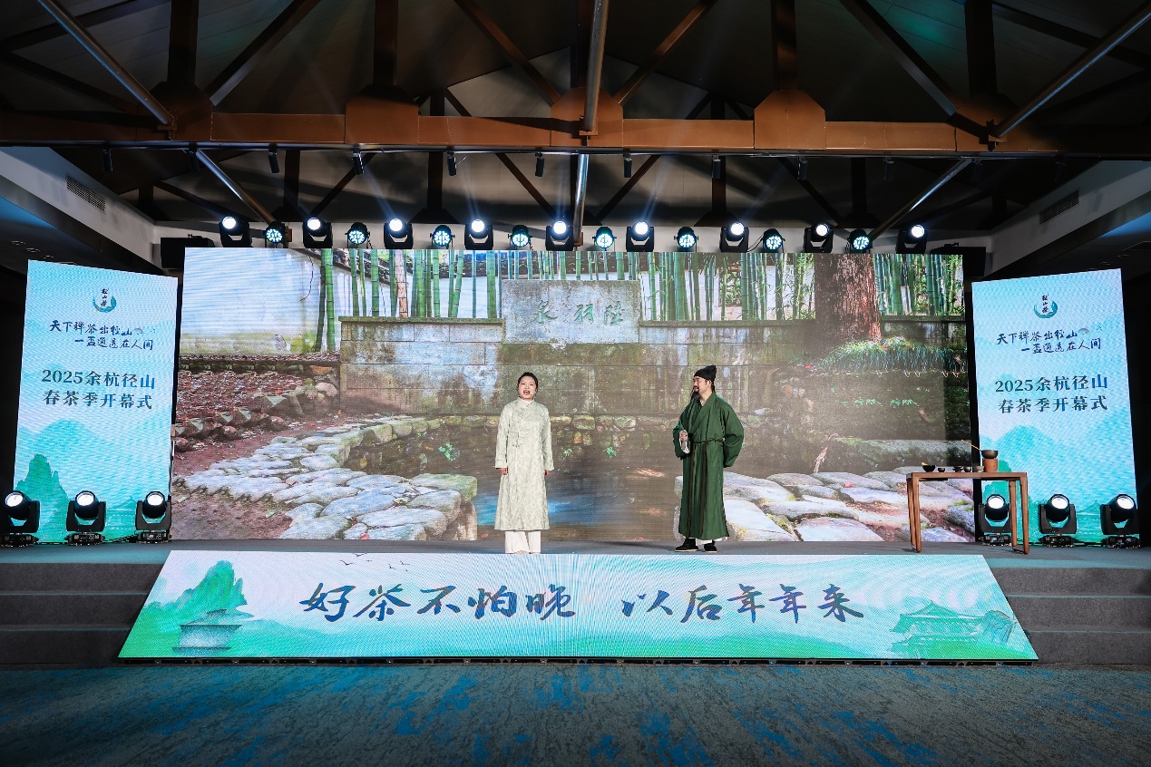 On the morning of March 31, at the Yuhang Jingshan Tea Culture Park, a "tea dialogue" spanning a thousand years unfolded: an AI-recreated "Tea Sage" Lu Yu, holding a tea cup, discussed The Classic of Tea with Hanfu-clad "tea enthusiasts," while the audience erupted in applause. Titled "Zen Tea Originates from Jingshan, a Single Cup Enlightens the Human World," the opening ceremony of the 2025 Yuhang Jingshan Spring Tea Season injected cutting-edge technology into the millennium-old Zen tea culture, officially launching a two-month spring tea celebration.