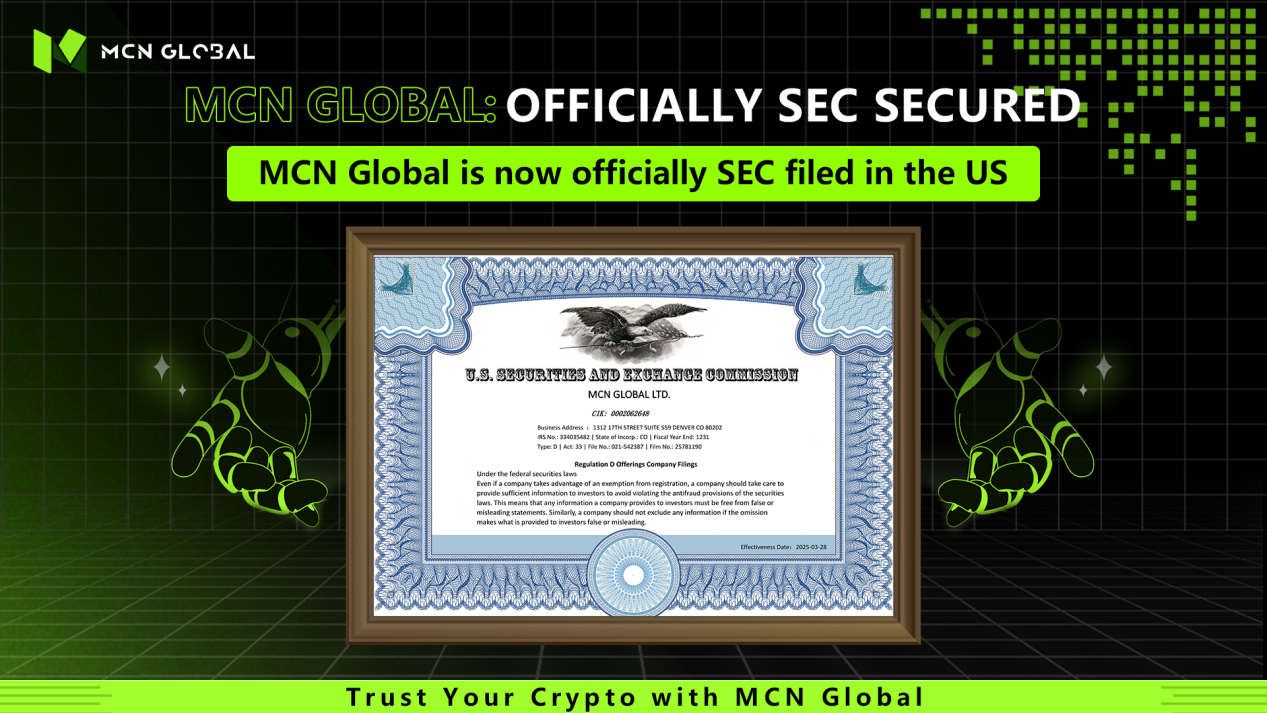April 3, 2025 – Denver, Colorado – As the Web3 industry shifts toward a new era defined by regulation and transparency, MCN GLOBAL LTD. has made headlines with a major compliance milestone. The company officially filed with the U.S. Securities and Exchange Commission (SEC) under Regulation D on March 28, 2025. The filing, listed under File No. 021-542387, is now publicly available on the SEC’s website for full public and investor access. This filing grants MCN GLOBAL the legal status required to offer private securities placements to accredited investors within the United States.