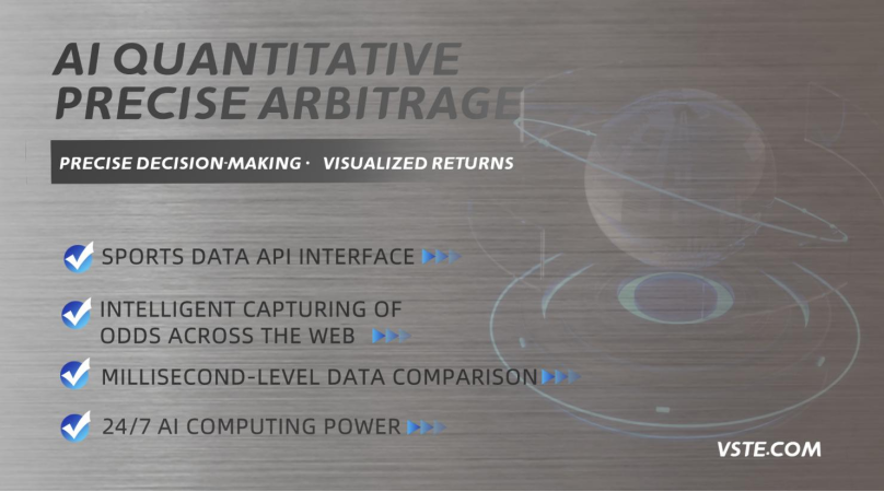 VSTE has been deeply involved in the sports arbitrage industry for 11 years, using cutting-edge technology as the foundation for development, and is committed to helping users achieve high returns and low risks in sports arbitrage. For this purpose, VSTE has developed its own intelligent arbitrage system, which combines AI technology to intelligently capture odds across the web and perform millisecond-level data comparison. It provides users with intelligent services such as one-click entrust and arbitrage calculators. At the same time, it has a professional sports data API interface, covering 15+ global sports data, truly using technology to connect B-end and C-end markets.