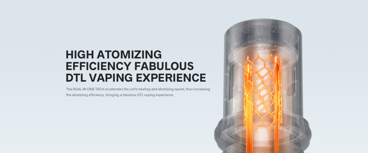The Dual in One PnP coils has high atomization efficiency, perfectly and fully atomizing every e-liquid and delivering a rich flavor and delicate taste with bursting vapor. The test results show that the coil could atomize 35 mL of e-liquid. There are 2 modes for power adjusting: RBA and SMART. The former allows vapers to customize the power from 5 W to 40 W, and the latter will smartly work out a proper output power based on the present coil's resistance, smart and economical.