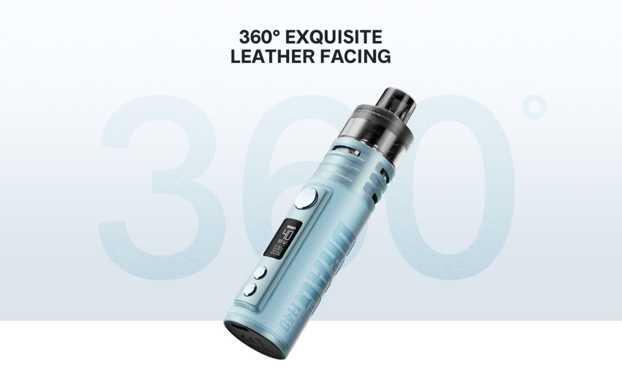 As the new member of the DRAG POD MOD Family, DRAG H40 continues the classic debossed and cylindrical design of the DRAG series. The top layer of leather firmly beds the device, delicate in look and comfortable to touch.