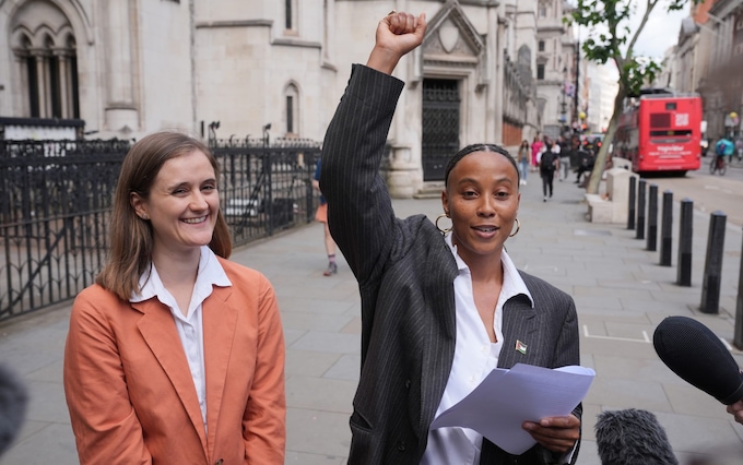 Ella Janneh (right) outside the Royal Courts in London on Wednesday after being awarded damages