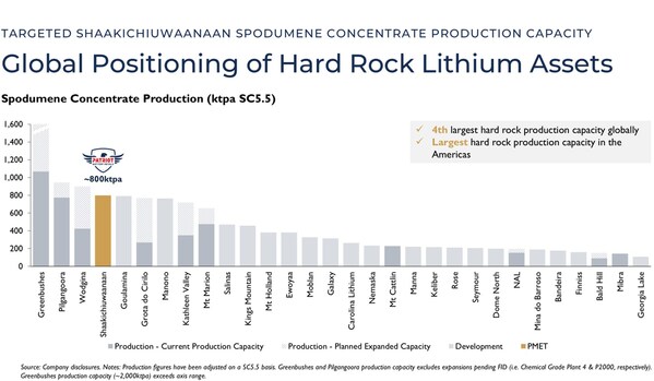 Figure 2: Shaakichiuwaanaan Spodumene Concentrate Production (See Appendix 2 for the various Company filings as of August 16,as supporting data production capacity both current and planned) (CNW Group/Patriot Battery Metals Inc.)