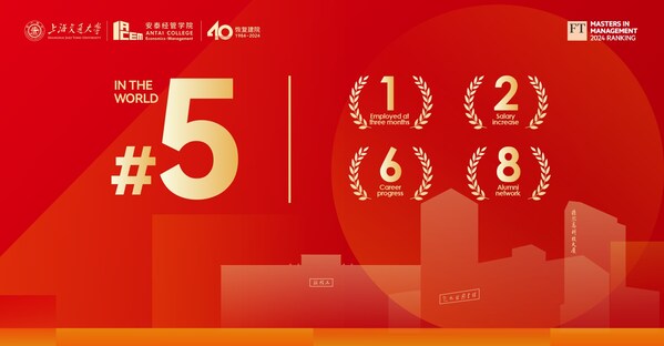 SHANGHAI,Sept. 11,2024 -- On September 9,2024,the Financial Times released the list of Top 100 Masters in Management programs in the world.Antai College of Economics and Management (ACEM) of Shanghai Jiao Tong University (SJTU) ranks 5th in the world and 1st in China,which has been ranked among the top 50 in the world for 16 consecutive years since it first participated in the evaluation in 2009. The sub-indicators of the program are outstanding,with "Employed at three months" ranking 1st,"Salary Percentage Increase" at 2nd,"Careers Service Rank" at 5th,"Careers Progress Rank" at 6th,"Alumni Network rank" at 8th in the world.