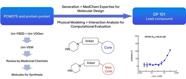 The RiDYMO® platform,a next-generation computational drug design platform developed by DP Technology,based on AI for Science,provides robust end-to-end support for hit discovery and optimization by integrating multiple artificial intelligence techniques,physical algorithms,and experimental validation. In this study,we referred to the co-crystal complex of PLK1 and PCM075 (2YAC) and utilized theRiDYMO platform's comprehensive capabilities to synthesize and test under 100 compounds,leading to the identification of preclinical candidate compounds with potential clinical value and significantly accelerating the drug development process.