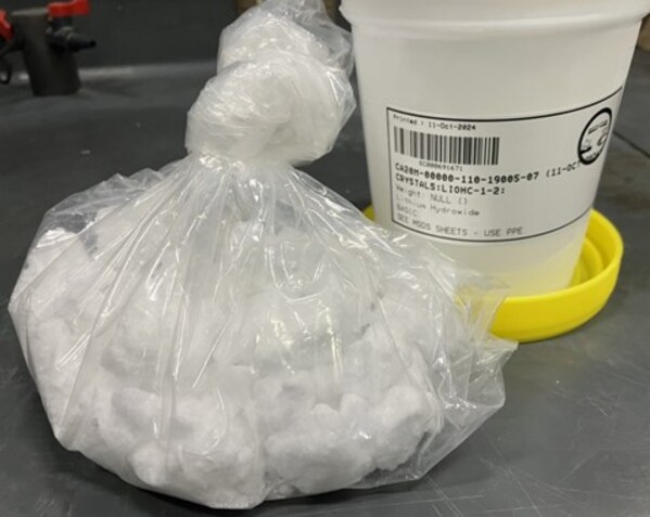 Figure 1: Marketable,battery-grade lithium hydroxide monohydrate produced from the CV5 Spodumene Pegmatite. (CNW Group/Patriot Battery Metals Inc.)