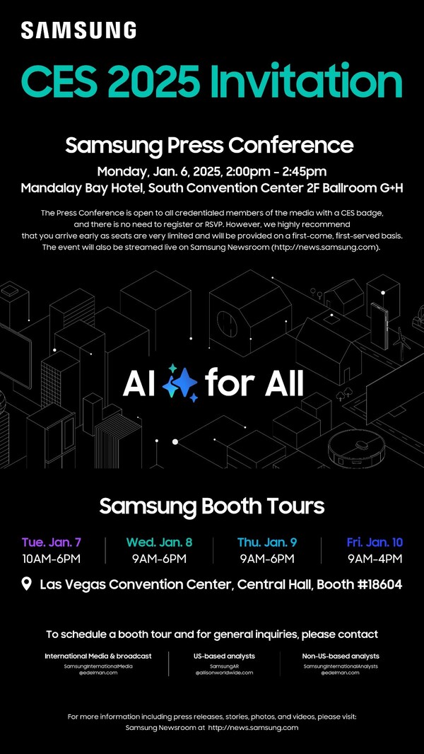 [Invitation] Samsung Press Conference at CES 2025 ‘AI for All: Everyday,Everywhere’