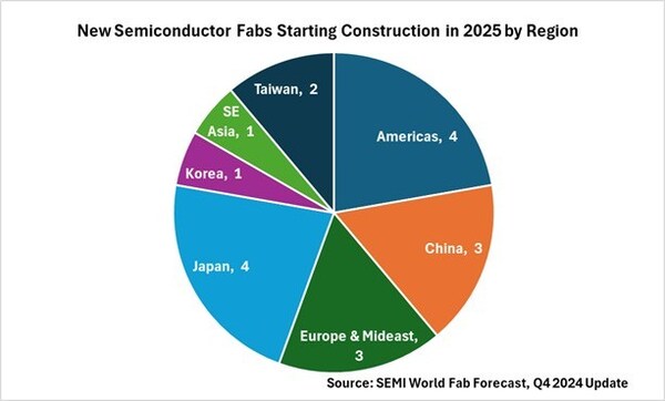 New Semiconductor Fabs Starting Construction in 2025 by Region