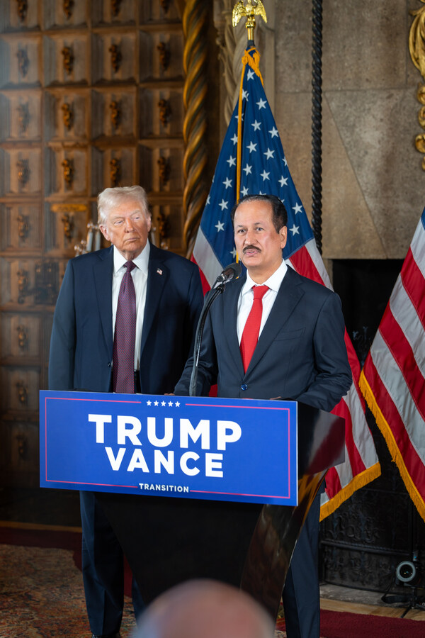 Founder and Chairman of DAMAC Mr. Hussain Sajwani with US President-elect Donald Trump,at Mar-a-Lago in Palm Beach,Florida,January 7,2025.