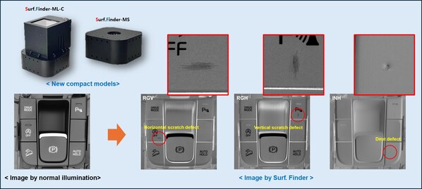 The compact models include Surf.Finder-MS and Surf.Finder-ML,with the additional option of coaxial illumination in the Surf.Finder-MS-C and Surf.Finder-ML-C models. Among them,the MS model is suitable for inspection targets with small sizes and rough surfaces,such as semiconductor,smartphone components. Additionally,the ML-C model is suitable for inspecting flat materials such as displays and films,with shiny surfaces and curved edges.