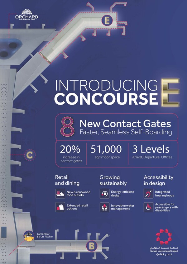 DOHA,Qatar,Feb. 3,2025 -- Hamad International Airport (DOH) is pleased to announce the opening of Concourse E as part of its latest terminal expansion program. Designed to further elevate the passenger journey,this development prioritises boarding efficiency,reduces reliance on remote gates & buses and incorporates accessibility & sustainability focused design.