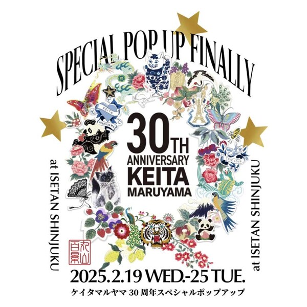 KEITA MARUYAMA 30th Anniversary SPECIAL POP UP FINALLY in Isetan ShinjukuThe Isetan Shinjuku store will host the finale of KEITA MARUYAMA's 30th-anniversary pop-up,celebrating one of Japan's leading fashion designers. The pop-up will showcase a variety of exclusive items,including collaboration sneakers with "Maison Mihara Yasuhiro",eco-bags by Ball & Chain,and unique interior goods.MainBldg. 1F Promotion