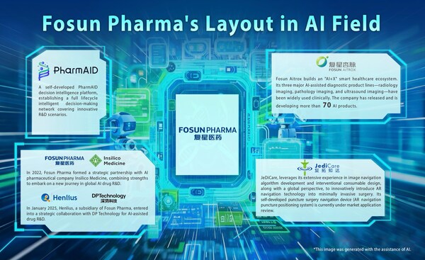 SHANGHAI,Feb. 17,2025 --Nowadays,artificial intelligence (AI) technology is profoundly reshaping the landscape of the pharmaceutical and healthcare industry. As a global innovation-driven pharmaceutical and healthcare group,Fosun Pharma places great emphasis on the transformative potential of AI technology in the pharmaceutical and healthcare sectors. The company actively embraces AI technology,deploying it in areas such as drug research and development,medical imaging,and precision medicine through both independent research and external collaborations,thereby driving transformation and development in the pharmaceutical industry through technological advancements. At the same time,Fosun Pharma is accelerating the deeper application of AI technology in marketing,customer service,and smart office solutions,using AI to improve quality and efficiency while promoting enhanced corporate management effectiveness.
