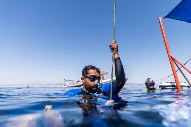 But one competitive freediver couldn’t resist breaking the blockade of the Strait of Hormuz to go back to his favourite spot.